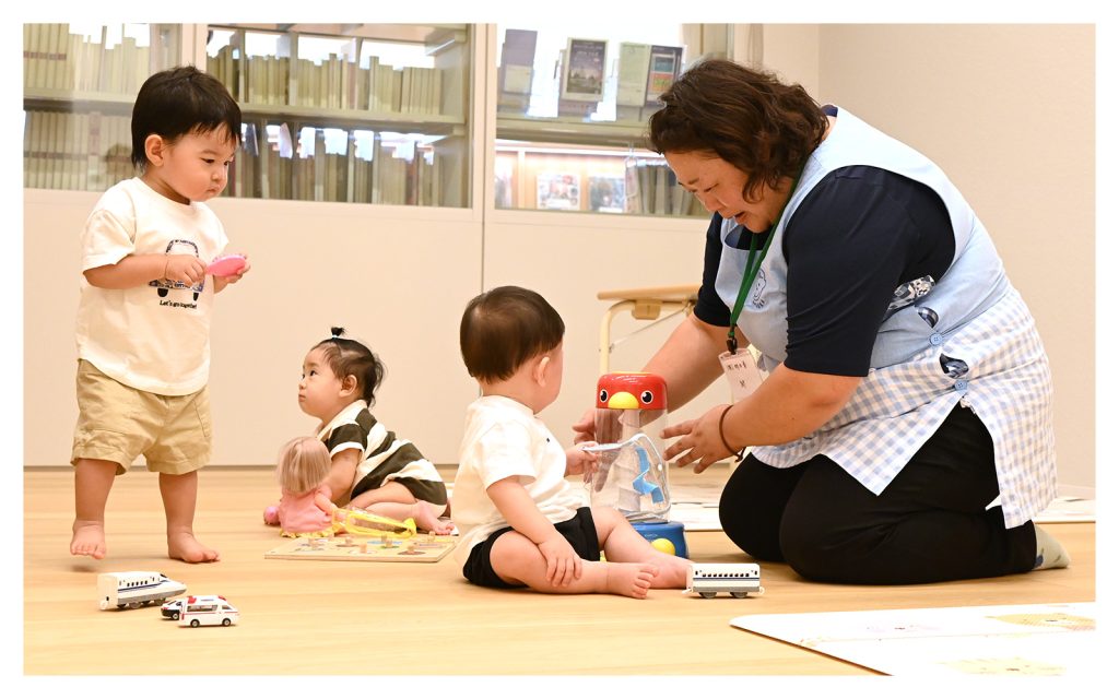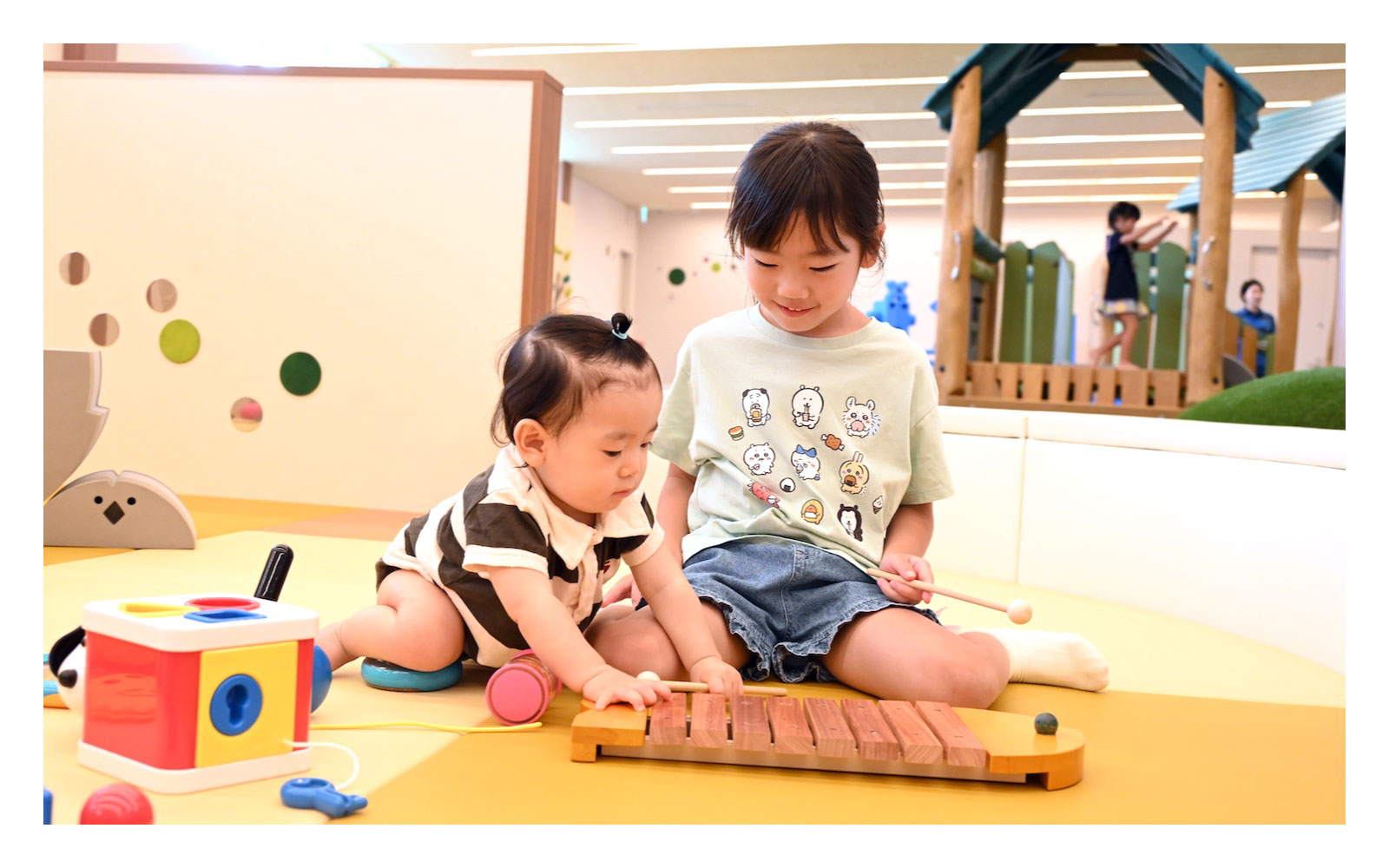異年齢児童や保護者の交流を促す遊具を準備しております(絵本の読み聞かせや保護者の休憩場所等として使用できる段差やスペースを構築するもの、異年齢児童をつなげるシンボル遊具など)