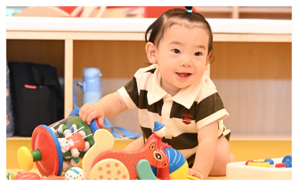 乳児期に必要な身体動作を促す遊具を準備しております。(手あそび・伝え歩き・座る・すべる・のぼるといった体の基礎をつくるもの)